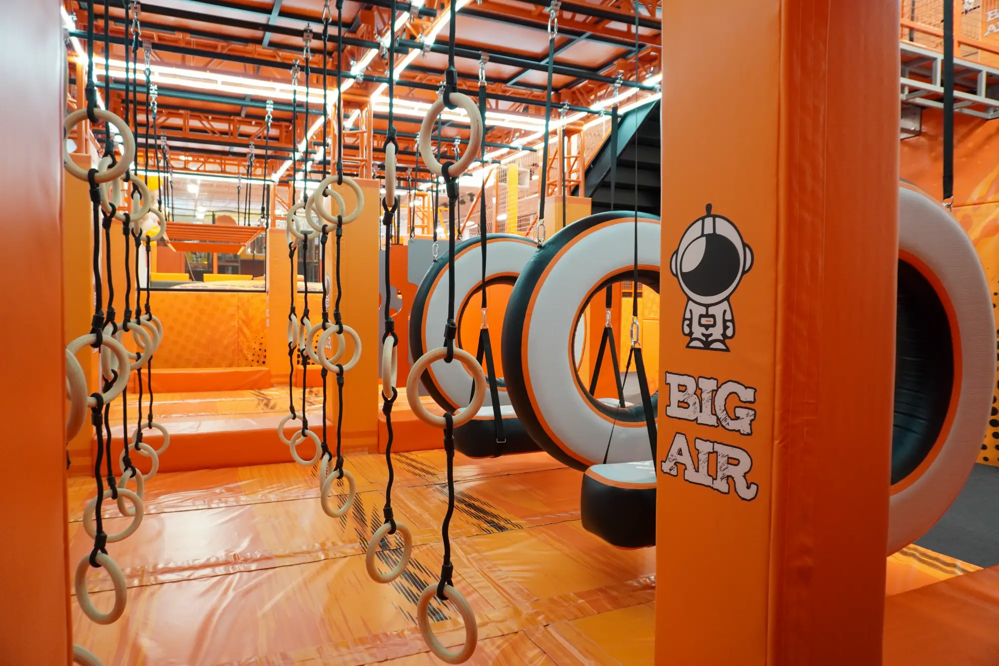 Learning the ropes has never been more thrilling. Get some extra hang time with our next-level obstacles on the Big Air ropes course. Weave, climb, and race your way through this high-flying obstacle course. Climb and swing through the air like a superhero as you compete to complete the course.